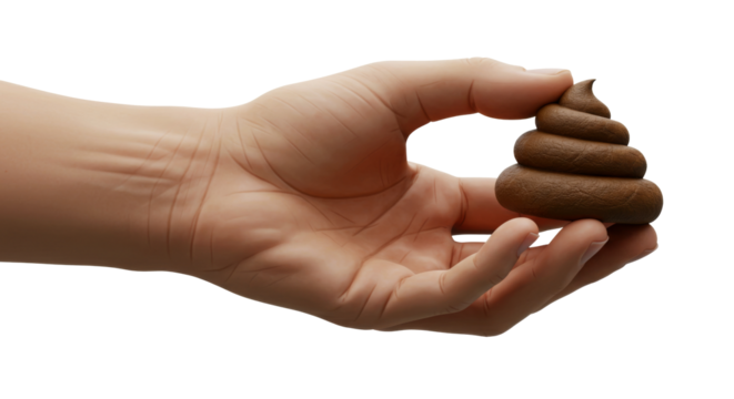 Hand & Fingers holding a piece of poop, turd fecal matter, gross feces, isolate transparent png