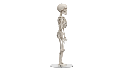 Human skeleton anatomy isolated PNG, front view of rib cage, bones and skull on transparent background, medical diagram for educational use