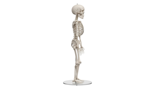 Isolated Human Skeleton Standing with Feet on Platform on Plain Surface, Medical Anatomy