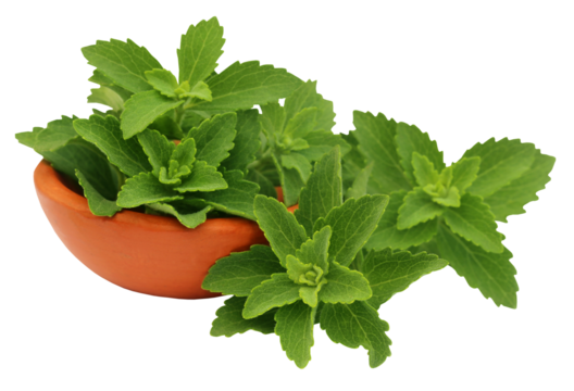 Stevia Leaves: Natural Sweetener Close-up on Transparent or White Background
