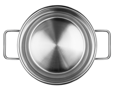 Stainless steel cooking pot with glass lid, isolated on transparent background
