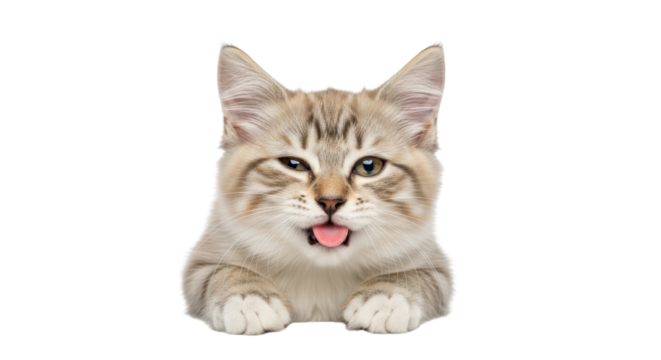 Cute kitten sticking its tongue out isolated PNG with Transparent Background
