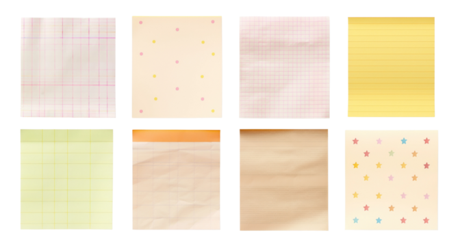 set of post it note sisolated on transparent background