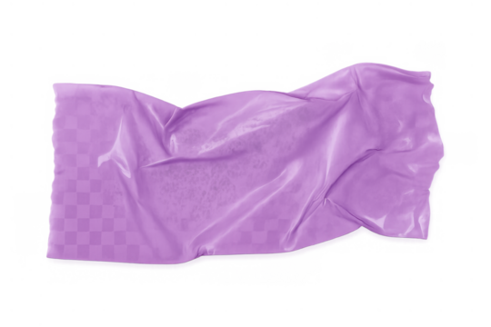 Purple wrinkled adhesive tape strip tearing with texture effect, transparent background, isolated sticky element for design