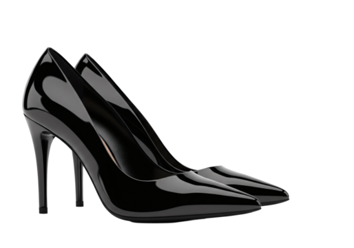 A black stiletto heel shoe isolated on transparent background is ready to wear
