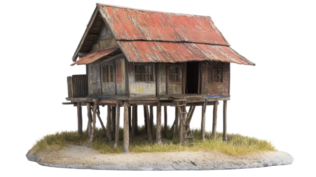 an old hut on stilts isolated on a transparent background, PNG image, PNG file, Generative art.
