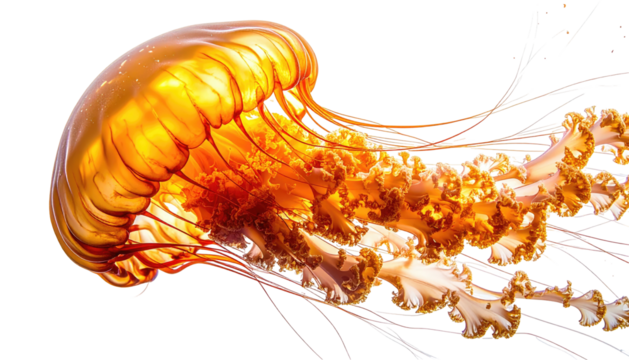 Jellyfish PNG, Transparent Background, Sea Creature, Ocean Animal, Glowing Tentacles, Marine Wildlife, Underwater Illustration, Transparent Floating Jellyfish