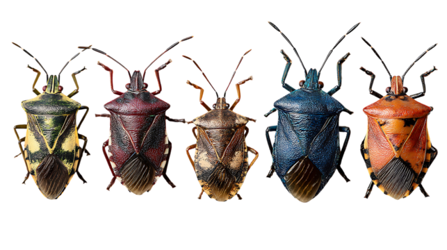 Close up of brown marmorated stink bug on blackground on transparent background