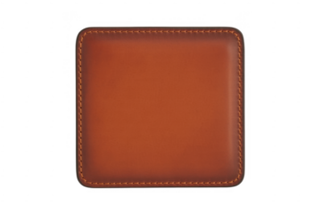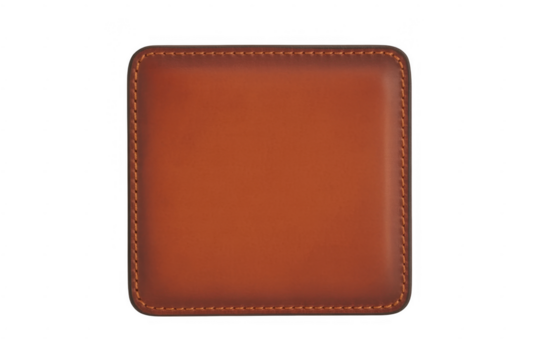Brown leather card holder with orange stitching wallet isolated on a transparent background