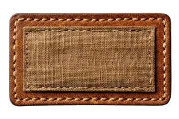 Cream colored fabric patch with stitched edge isolated on transparent PNG
