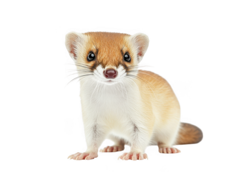 A cute stoat stands alertly on a transparent background isolated on transparent background