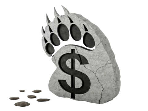Crumbled dollar symbols on transparent background indicates fragile economy