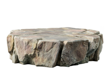 Rough textured stone pedestal platform with natural cracks isolated on transparent background