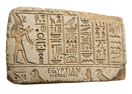 Ancient Egyptian Hieroglyphs Carved in Stone Tablet with Pharaoh Figure and Symbol Writing for History Education