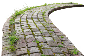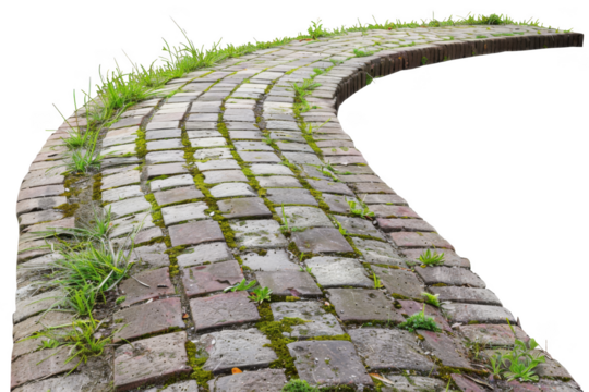 Curved stone pathway with greenery, isolated on transparent cutout background