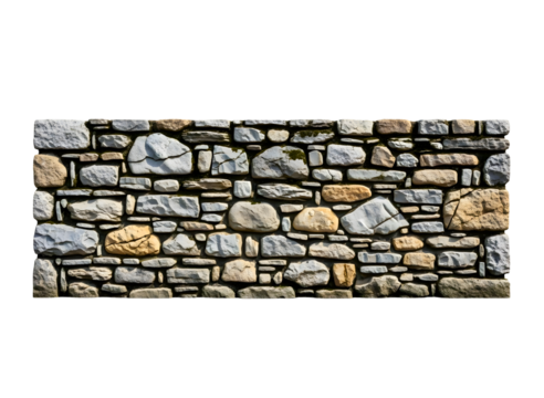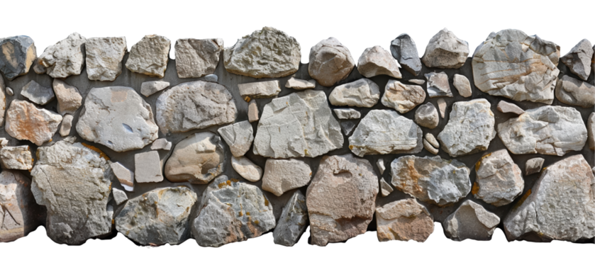 A wall made of rocks is shown in a white background