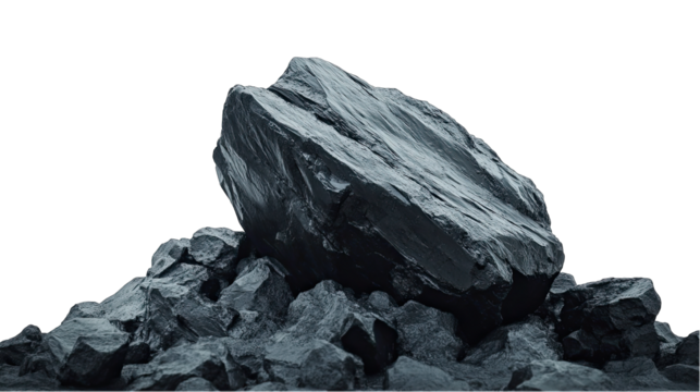 Grey Layered Rock Formation Isolated on Transparent Background