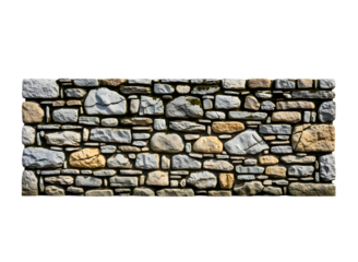 Rough textured natural stone wall pattern isolated on transparent background