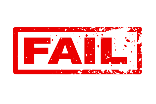 Distressed red FAIL rubber stamp with a rectangular border on a solid black background
