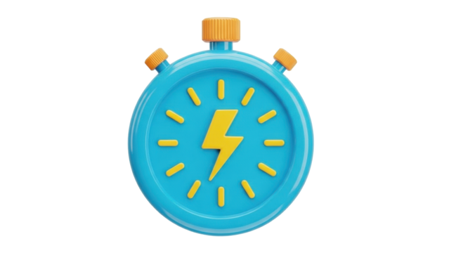 Isolated blue stopwatch with a lightning bolt, a concept for speed or fast delivery