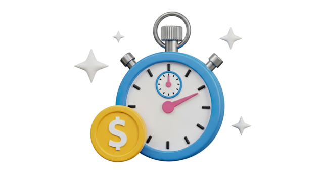 Illustration of closeup of a blue stopwatch with a white face and black numbers, isolated on transparent background on transparent background