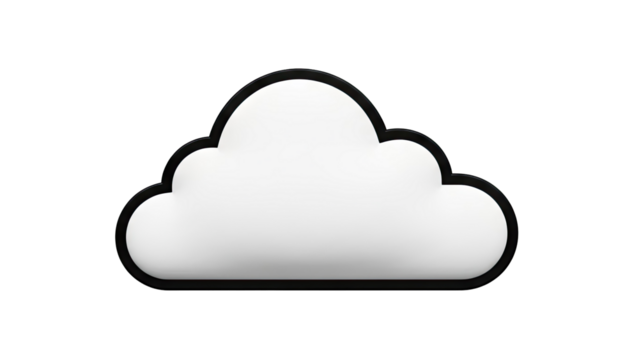 3D White Cloud Icon with Black Outline