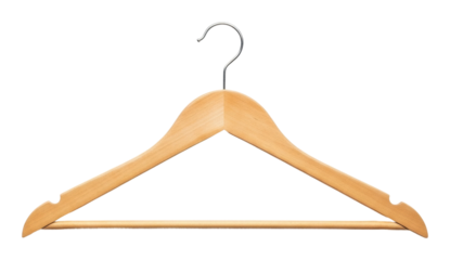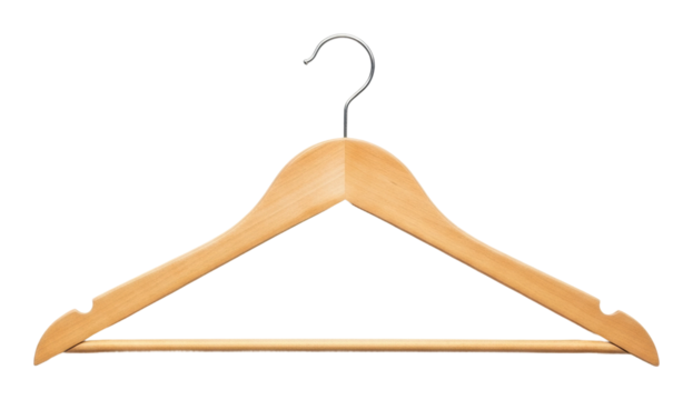 Clothes storage solutions wooden hanger display in minimalist style isolated on transparent background