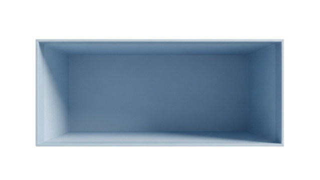 Empty blue box isolated PNG, container for storage and organization on transparent background Minimalist design for product presentation