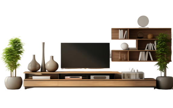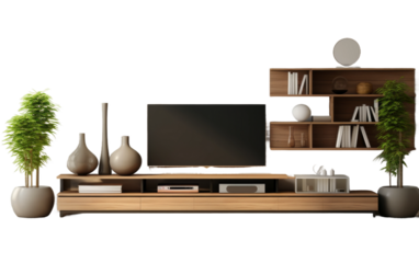 Wooden shelf designed for modern home decor or storage solutions, cut out transparent
