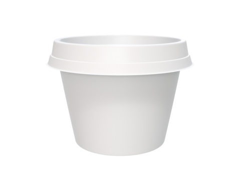Blank white plastic container isolated PNG on transparent background, food storage tub for yogurt, ice cream, or cosmetic cream packaging mockup