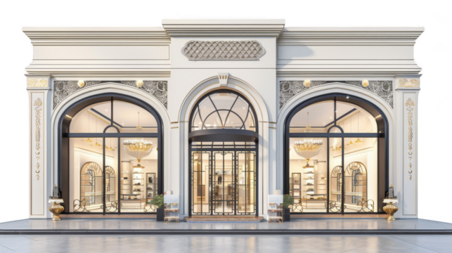 small commercial store front with red awnings isolated png transparent background