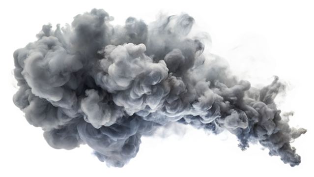 Grey smoke cloud isolated on transparent background, perfect for adding dramatic effects and texture to your designs, an abstract element
