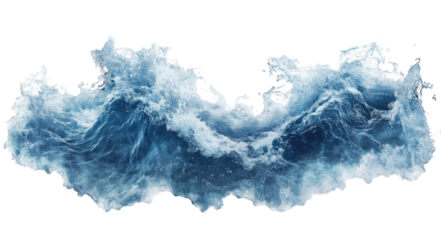 Powerful ocean wave crashing with foam and splashes on transparent background