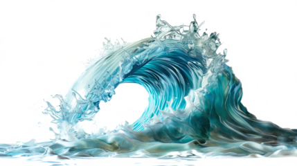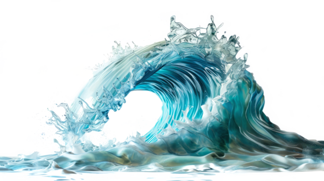 Realistic sea wave crashing in motion on a clear background, perfect for surfing, beach, and water themes