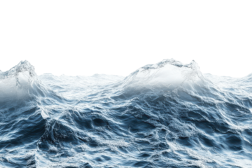 Rough deep sea waves in vibrant blue and green colors isolated on white background isolated on transparent background