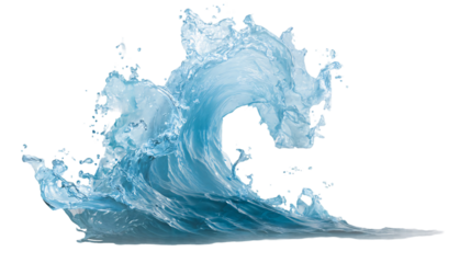 Realistic sea wave crashing in motion on a clear background, perfect for surfing, beach, and water themes
