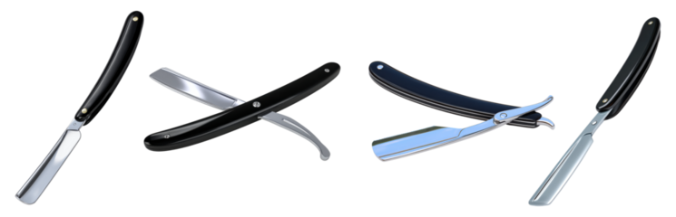 Steel straight razor isolated on a transparent background. Completely in focus. Focus stacking.