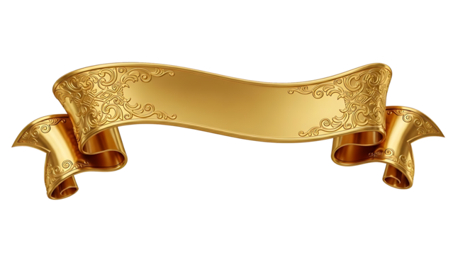 Golden ribbon banner illustration on a white background viewed from a straightforward perspective