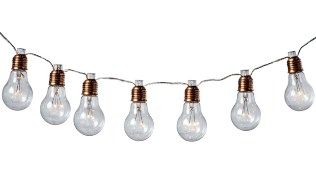 Twinkling string lights design isolated on transparent background glowing fairy bulbs festive decoration high resolution PNG clipart for invitations