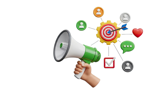 3d icon of business strategy icons including presentation, target, lightbulb, trophy, gear, and checklist isolated on transparent background