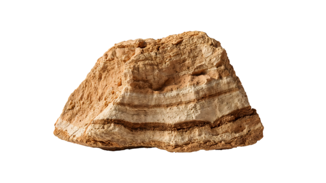 Sedimentary rock with distinct layers isolated on the transparent background, natural mineral formation, geology resource, earth science texture, stratification