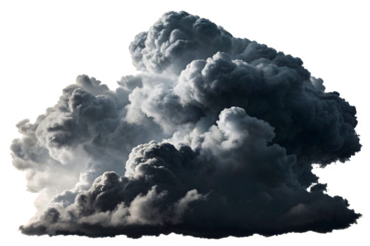 Black cumulus cloud isolated on white or transparent background
