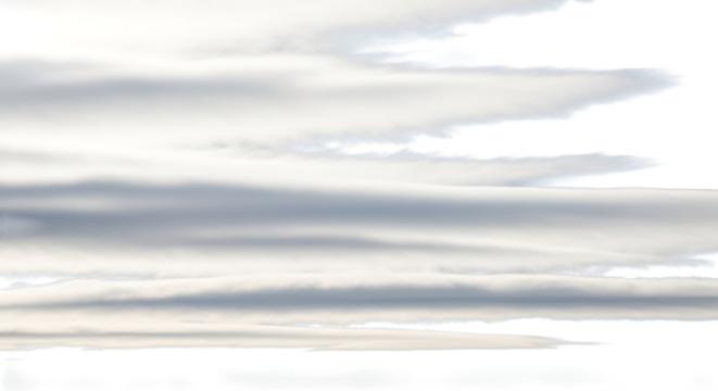 Gentle layers of soft clouds drift across the sky, creating a serene and peaceful atmosphere isolated on transparent background the subtle shades of gray and white blend seamlessly, evoking a sense of