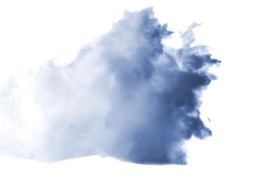 Water mist burst in airy formation isolated on white background
