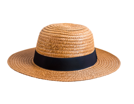 Straw boater hat with orange band on transparent background