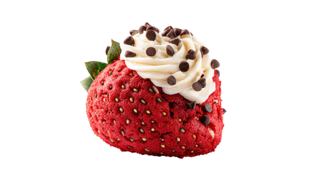Happy mother's day cupcake with red heart and strawberry decor on transparent background