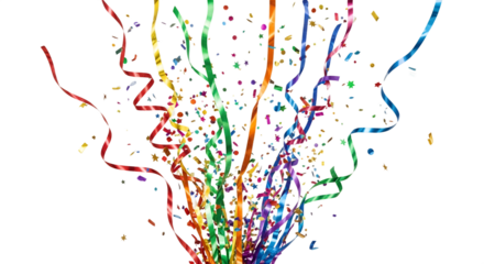 Colorful confetti streamers on a light transparent background