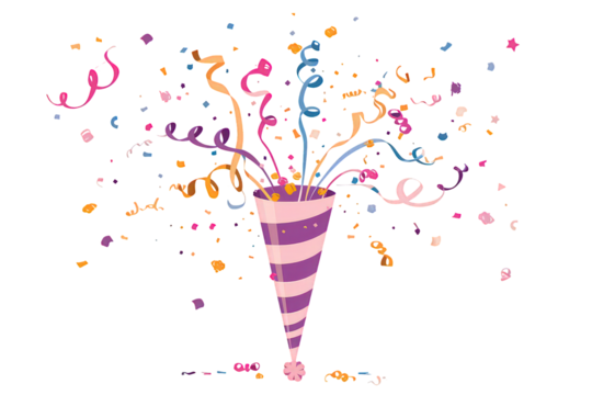 Brightly colored confetti and serpentine streamers falling, bringing fun and excitement to birthday parties and holidays