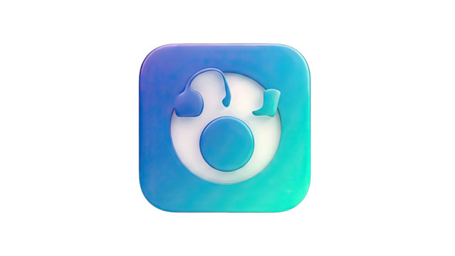 3D Orange and Purple Headphones with Question Mark Speech Bubble
