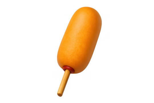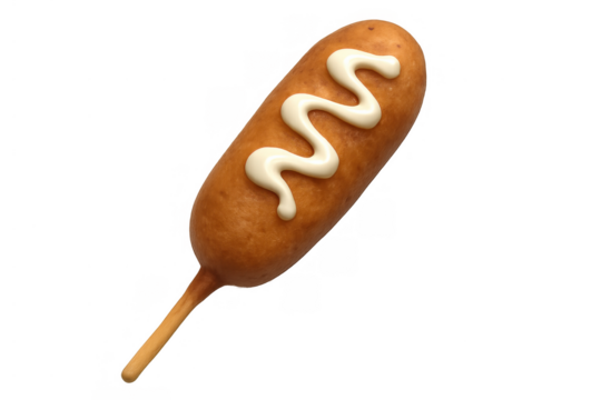 Corn dog with mayonnaise, a fried snack on a stick, fast food concept, isolated on transparent background